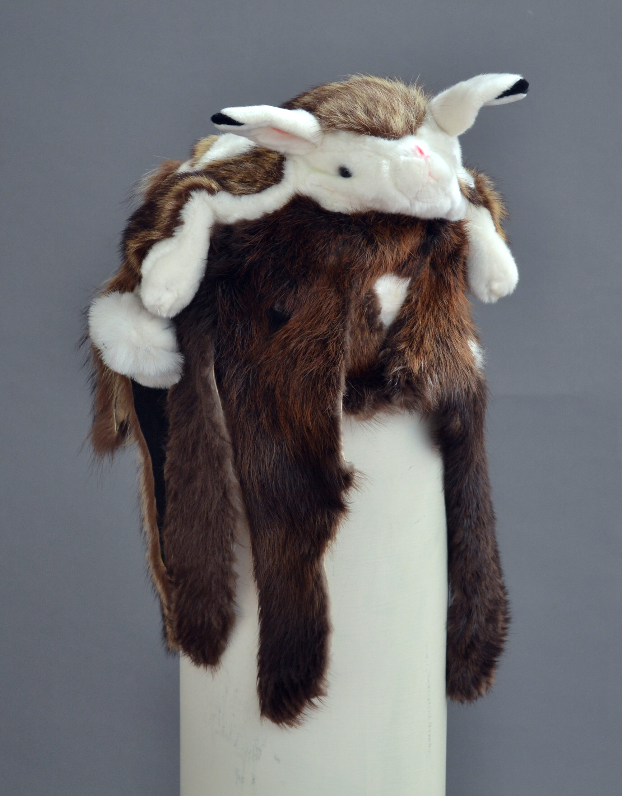 Altered stuffed animal, fur scraps.